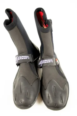 Die Ascan Speed Neoprenschuhe haben einen High-Cut mit einem hohen Schaft, der bis über den Knöchel reicht. Hierdurch ist dieser wärmer und gibt mehr Halt. Das Anziehen ist oft etwas mühsam. (Neopren-)Socken können das Anziehen erleichtern.