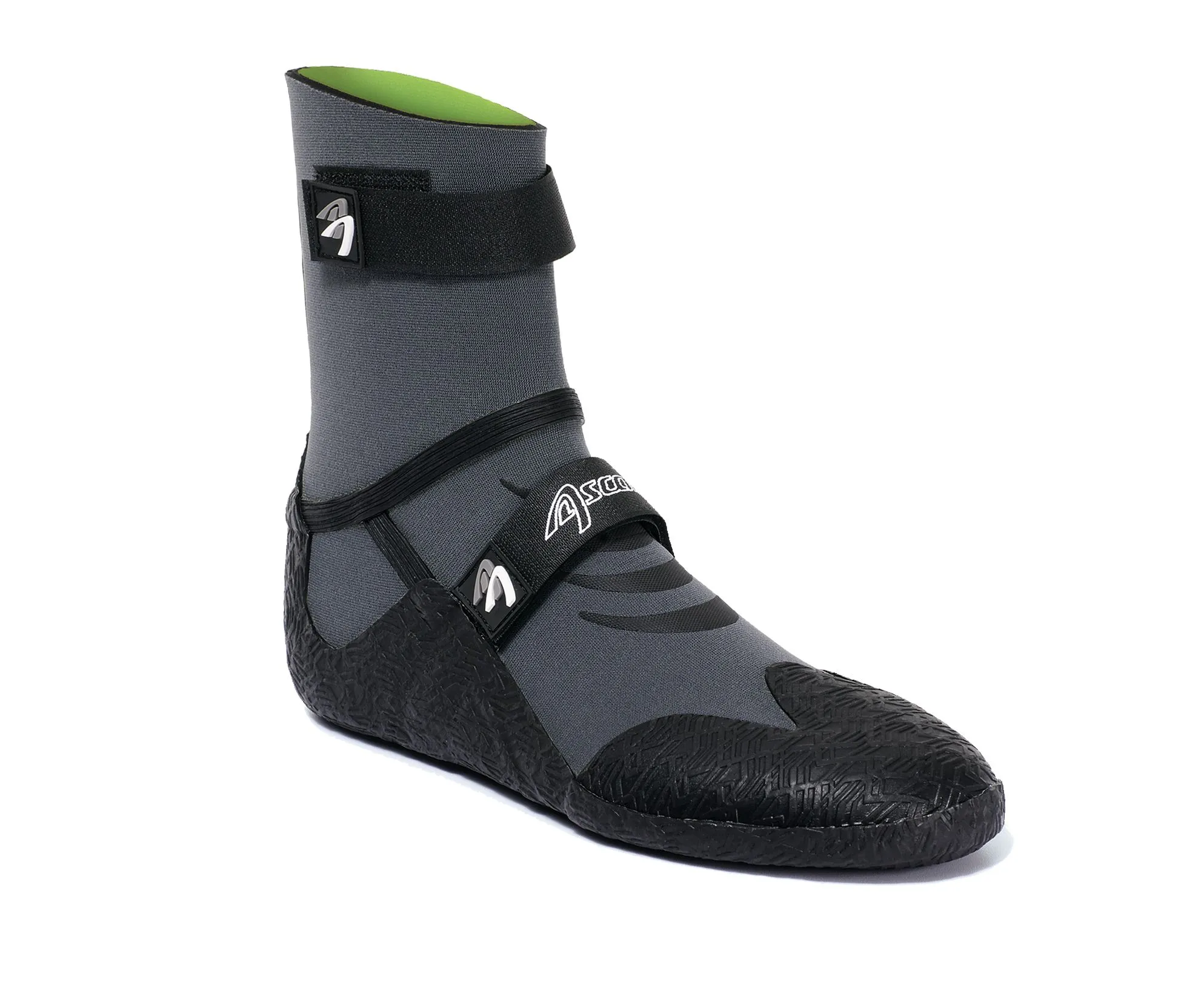 Die Ascan STAR (Round) Neoprenschuhe haben einen High-Cut mit einem hohen Schaft, der bis über den Knöchel reicht. Dadurch ist er wärmer und bietet einen sicheren Sitz. Das Anziehen kann durch (Neopren-)Socken erleichtert werden.