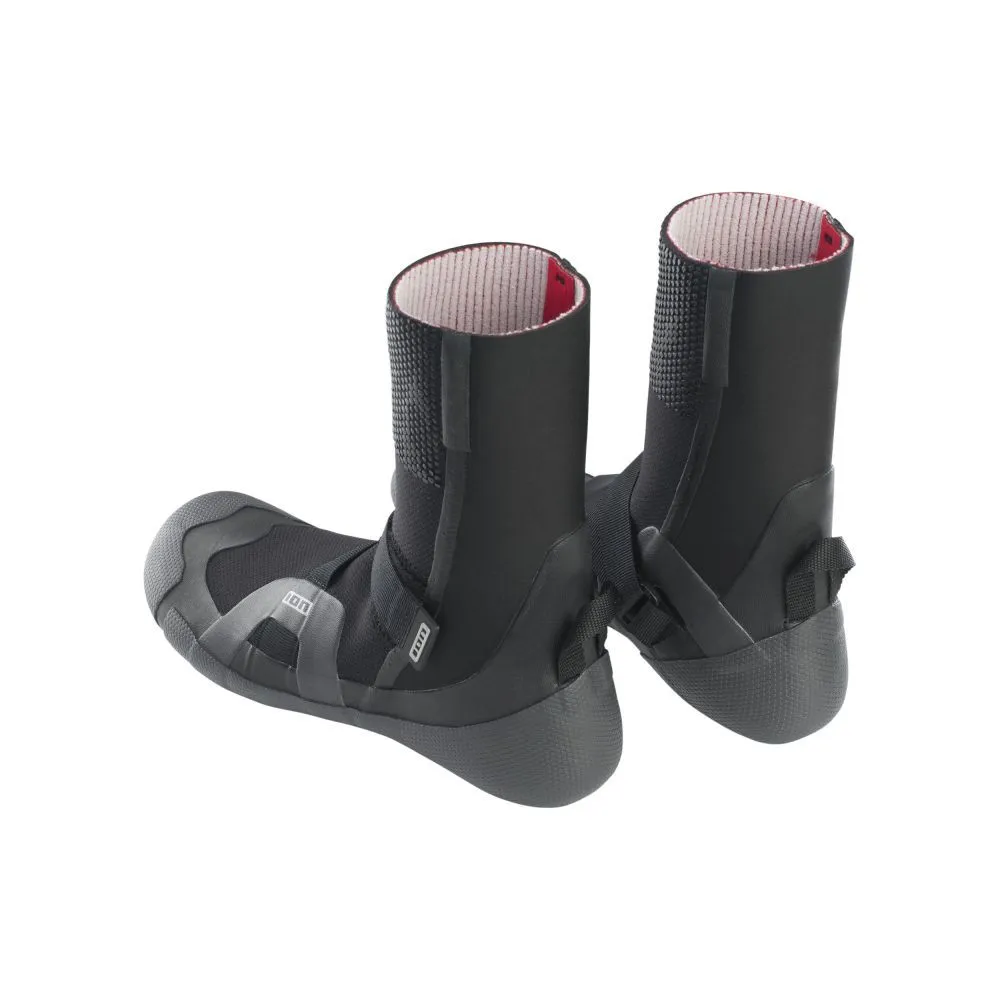 Die ION Ballistic Boots 3/2 Round Toe Neoprenschuhe haben einen High-Cut mit einem hohen Schaft, der bis über den Knöchel reicht. Dadurch ist er wärmer und bietet einen festen Sitz. Das Anziehen ist oft etwas mühsam. (Neopren-)Socken können das Anziehen erleichtern.