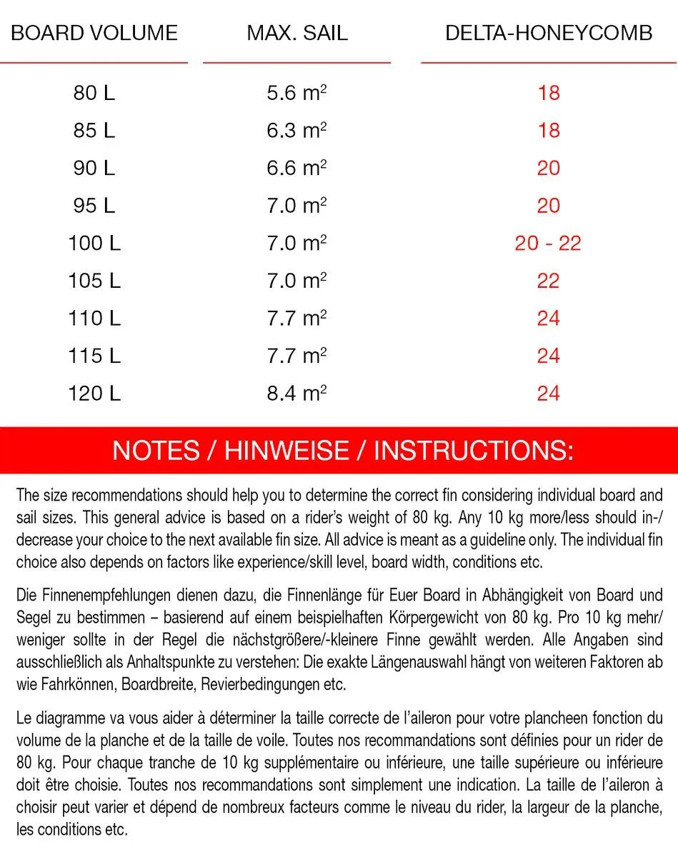 Die Delta ist eine ideale Freeridefinne fü r niedrige Wasserstä nde (Teile von Europa, Karibik und Australien). Der hohe Rake entschä rft das Seegrasproblem und einen potenziellen Bodenkontakt. Die Delta kann sehr kurz gewä hlt werden, lä uft gut Hö he und wird schnell. Auch erhä ltlich in G-10.