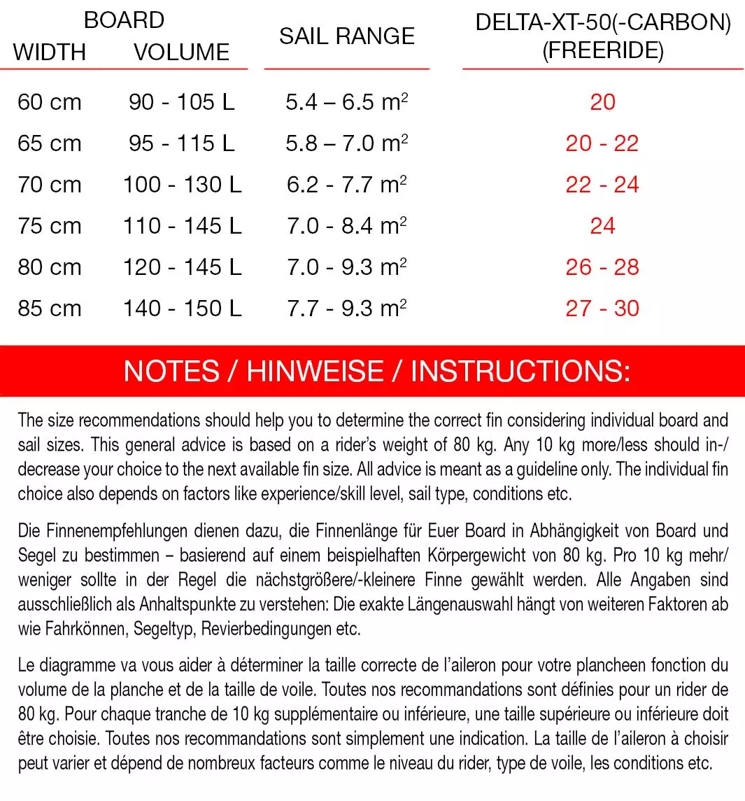 Die neu entwickelte Delta-XT-50 hat einen Rake von 50 Grad und ein sehr dü nnes, flaches Profil. Sie wurde intensiv in Dä nemark und Australien getestet und ist unser neuer Maß stab fü r Slalom, Speed und Freeride in sehr flachen Revieren und bei starkem Seegras. Extrem schnell und verlä sslich!