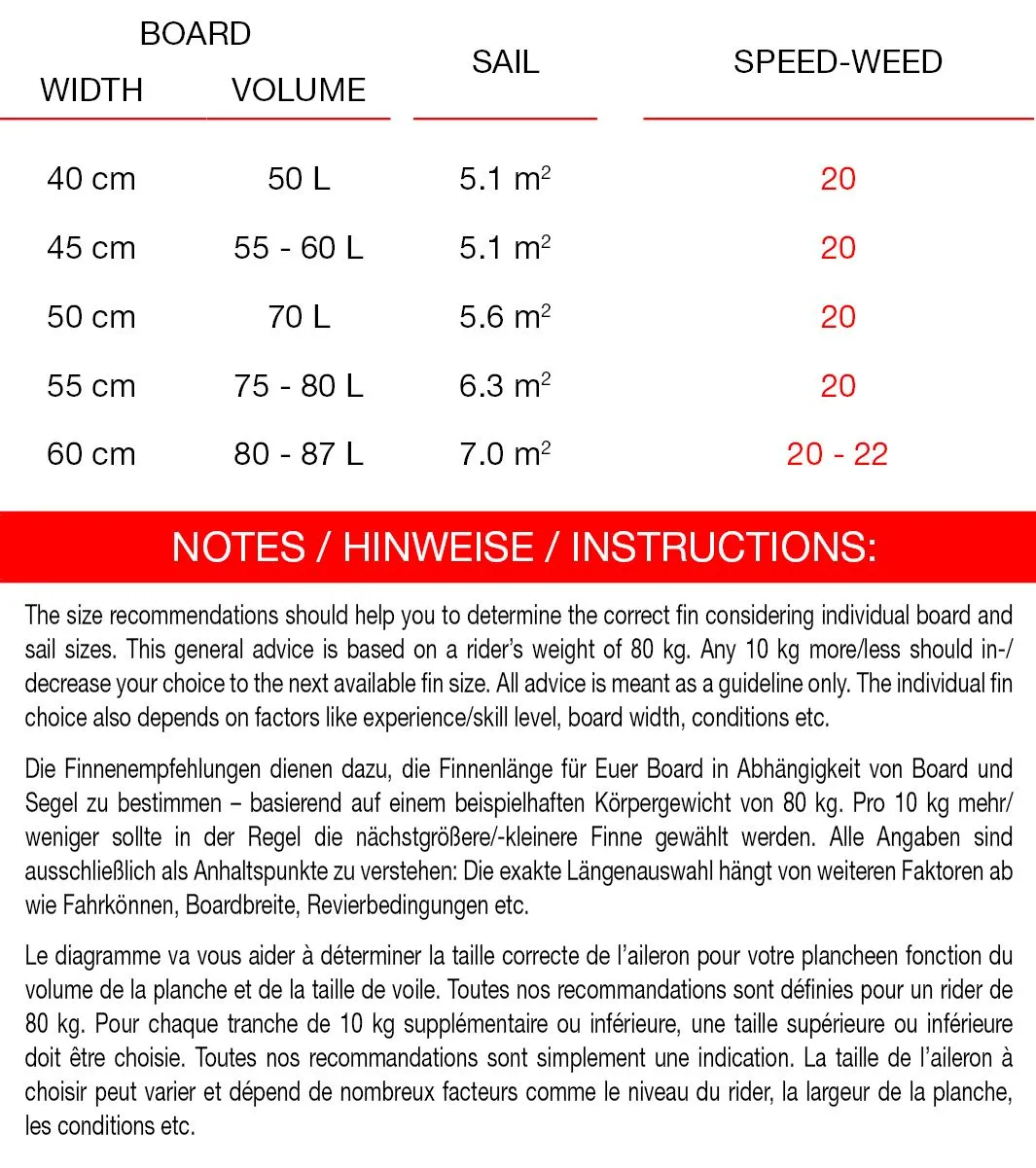 Aufgrund von Kundenwü nschen aus Europa, Australien und Amerika haben wir die Speed-Finne auch als Weed-Finne realisiert. Die Speed-Weed ist sehr schnell und aufgrund der hohen Pfeilung besonders gut zu kontrollieren. Dadurch kö nnen Top-Geschwindigkeiten bei Chop und glattem Wasser erzielt werden.