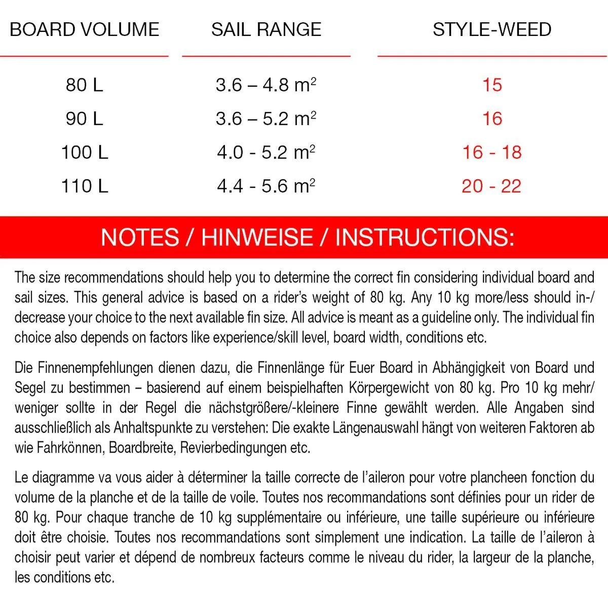 Fü r alle, die bei Seegras freestylen wollen, wurde diese Finne mit entsprechendem Rake versehen. Die Style-Weed ist schnell, drehfreudig und bietet guten Grip beim Absprung. DIE Top-Freestyle-Finne fü r Profis und Amateure in allen Grasrevieren weltweit &ndash von der Ostsee bis Brasilien.
