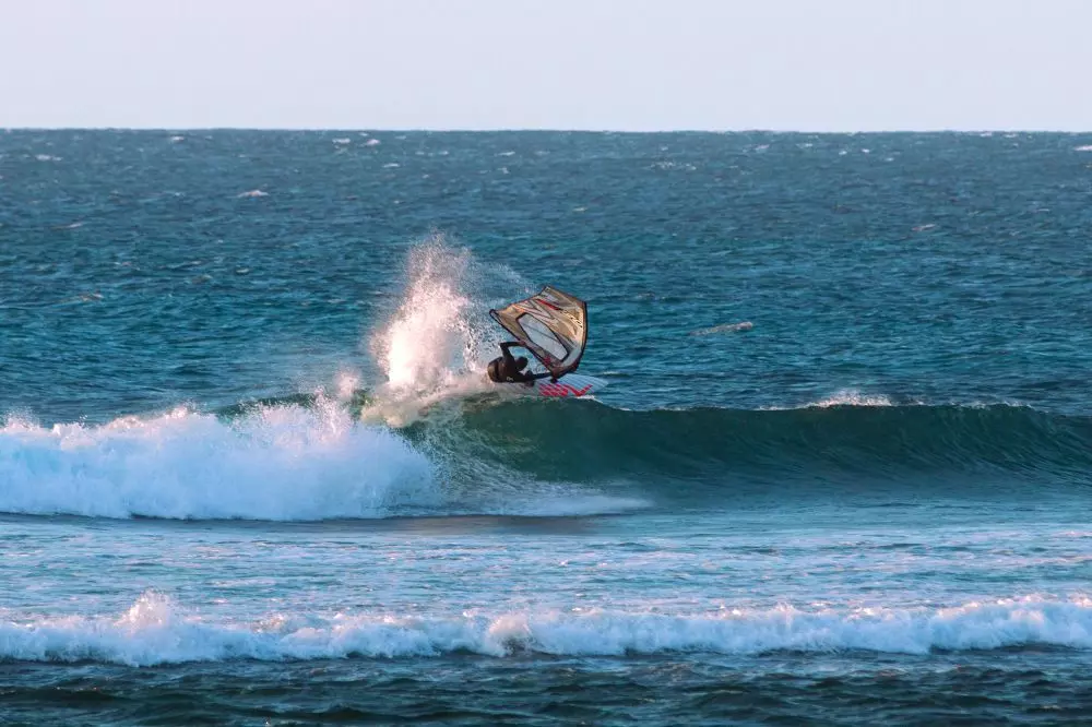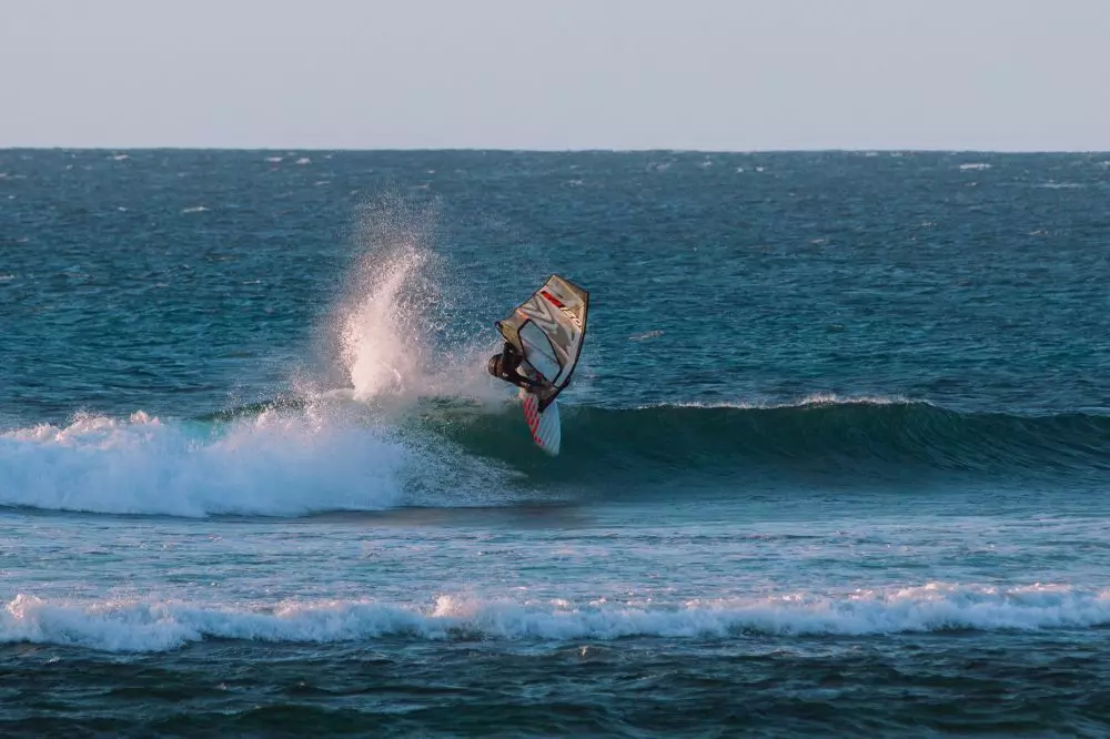 Das  Premium 4-Latten Wavesegel  von SEVERNE.  CARBON FUSION  ist das Stichwort und in Verbindung mit den  verschweiß ten Panels  reagiert dieses ultraleichte Segel super sensibel egal ob bei Leichtwind oder am absoluten Maximum.